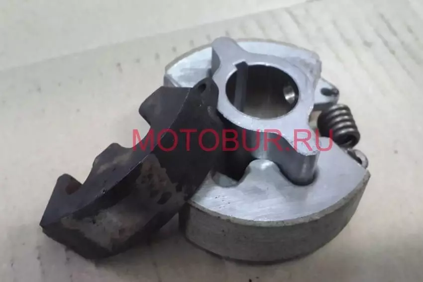 Центробежное сцепление наряду с редуктором является самой нагруженной частью механического мотобура. Оно служит связующим звеном между двигателем и редуктором, установлено между ними и начинает работать при увеличении оборотов двигателя от холостых до максимальных. Рабочий режим сцепления включается именно на максимальных оборотах, центробежные силы раскрывают сцепление от центра к краям, башмаки сцепления полностью раскрываются и встают враспор внутри барабана сцепления. Если обороты ниже максимальных, то башмаки сцепления скользят по внутренней поверхности барабана сцепления. Начинать и проводить бурение следует только при максимальных оборотах двигателя, чтобы исключить преждевременный износ сцепления. Также поломку сцепления и редуктора вызывает работа с изношенными режущими ножами.