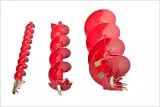 К тому же в зависимости от диаметра , на буровом шнеке для мотобура может быть установлено от одного до шести ножей. Режущие ножи установлены друг за другом, с разным углом атаки и не имеют общей режущей кромки. Благодаря этому на шнеке имеется не одна, а несколько режущих кромок, которые действуют поочередно, более эффективно взламывают грунт и намного меньше нагружаю трансмиссию мотобура. В зависимости от грунта и сезона использования режущие и направляющие ножи могут быть заменены на такие же по форме, но с карбидными пластинами. Такие ножи рекомендуется применять для бурения в мерзлом и сильно абразивном грунте.